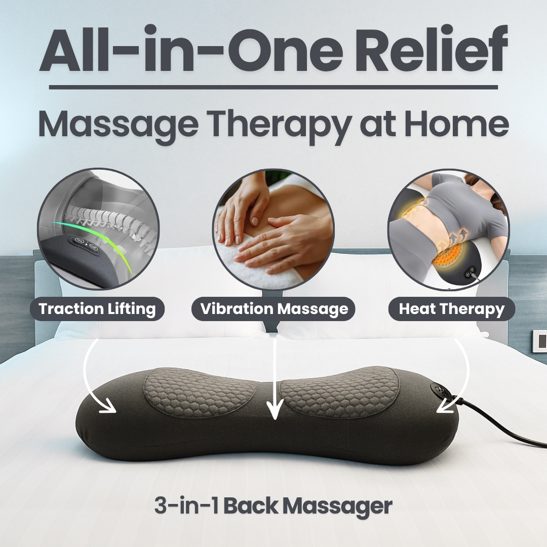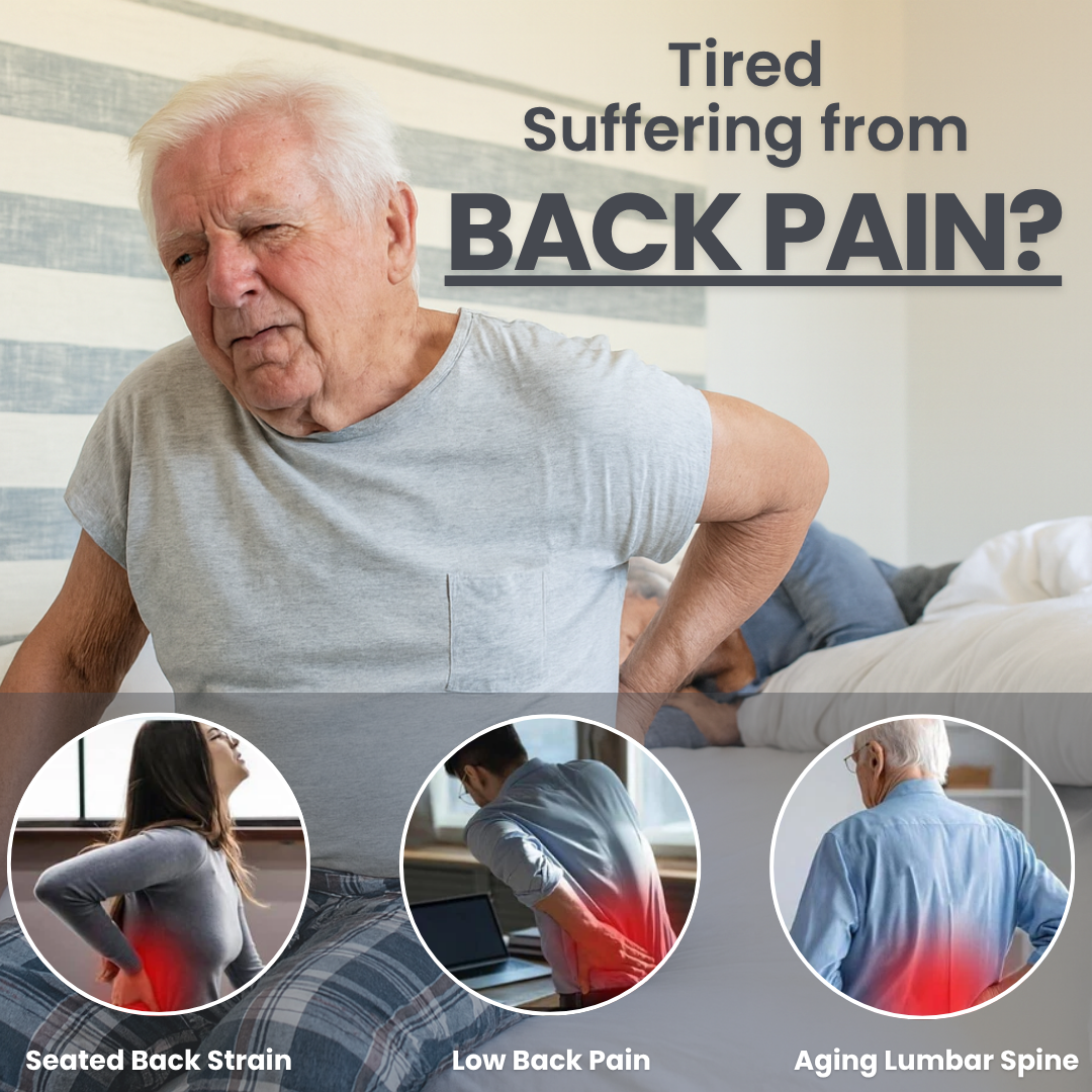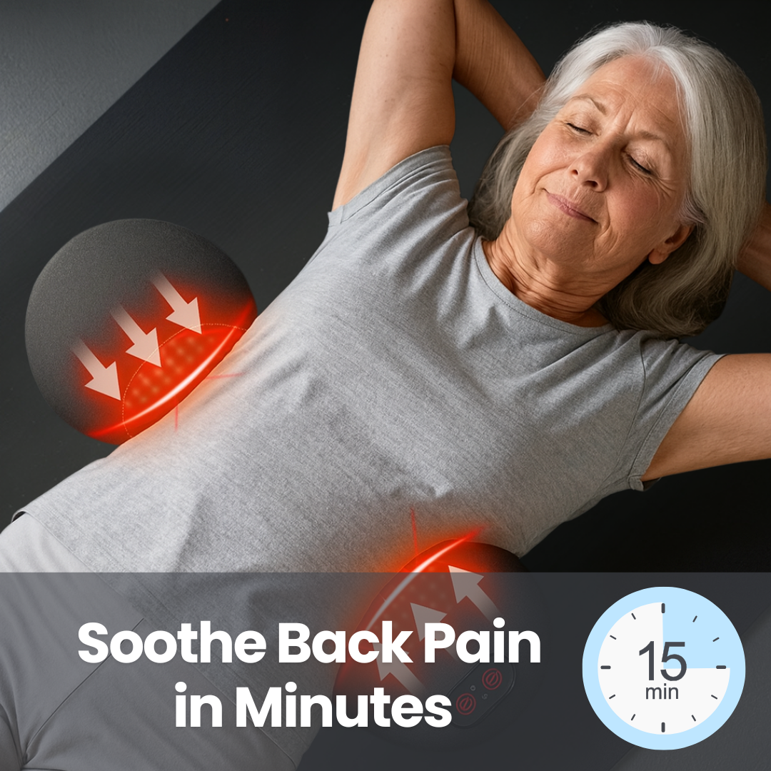 Long hours and poor posture strain your spine, causing stiffness and discomfort. In just 15 minutes a day, the 3-in-1 Back Massager combines heat, vibration, and a gentle 26° stretch to realign your spine, improve circulation, and ease pain — for lasting relief and mobility.